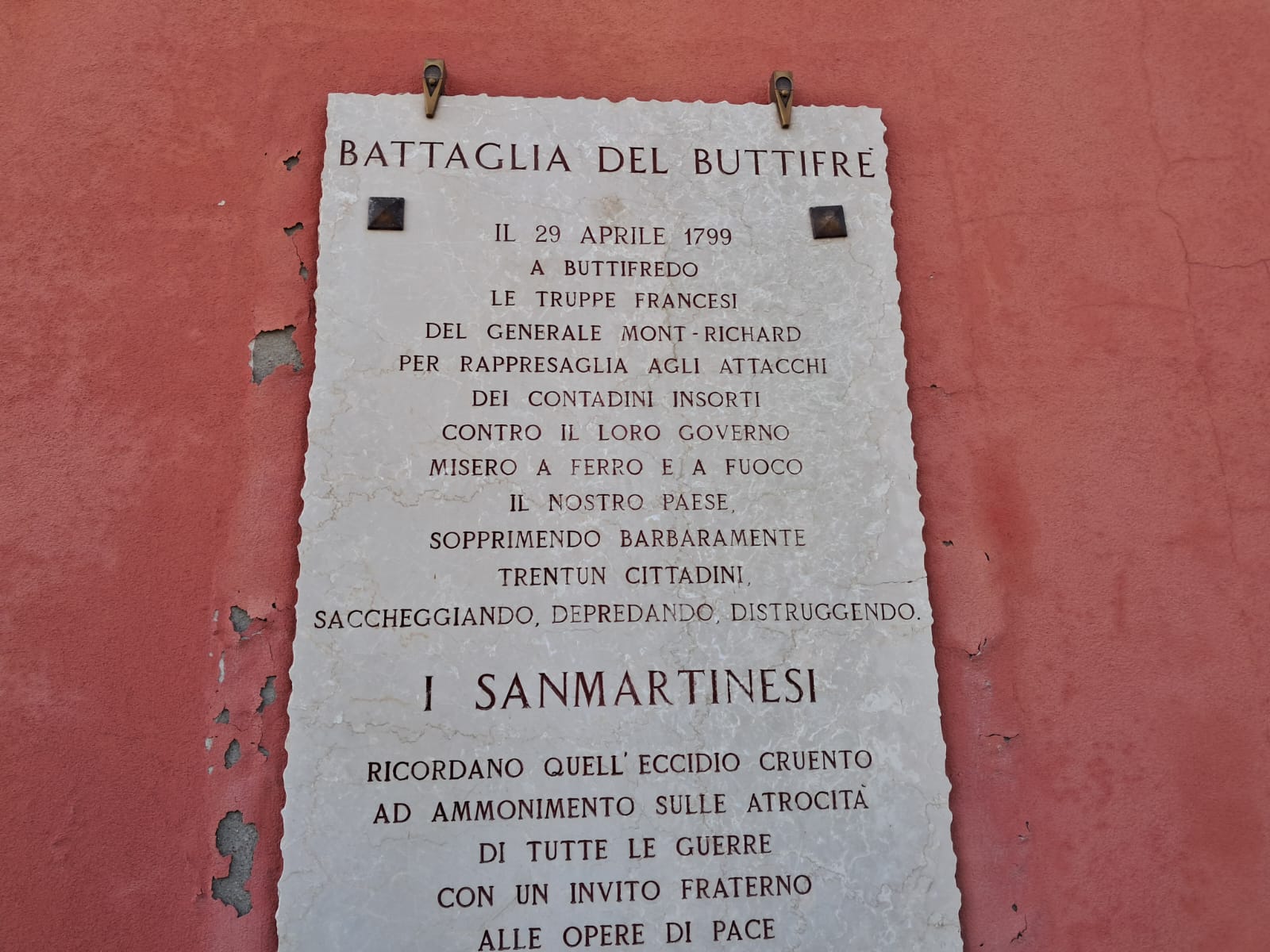 La battaglia del "Buttifrè" ricordata da una lapide a San Martino