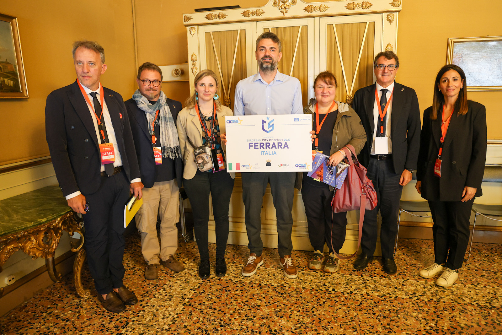 Si sono riuniti sabato 27 settembre 2025 nella sala di Giunta della residenza municipale di Ferrara, i componenti della Commissione Aces Italia che ha il compito di valutare la candidatura di Ferrara a "Città Europea dello Sport", insieme allo staff dell'Assessorato allo Sport del Comune di Ferrara guidato dall'assessore Francesco Carità, oltre a rappresentanti del mondo associativo sportivo ferrarese. Proprio nelle giornate che vedono svolgersi in piazze e spazi cittadini la prima edizione del Ferrara Sport Festival, i delegati Aces hanno raccolto notizie e gli elementi che consentiranno di decidere quali città italiane saranno designate al titolo nel 2027.