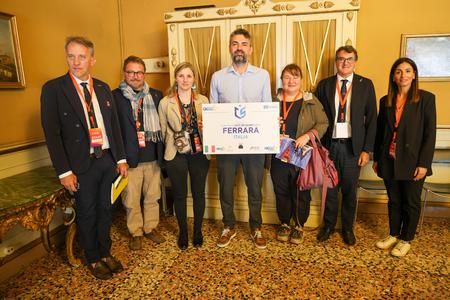 Nel corposo dossier preparato per la Commissione dei Valutatori di ACES, presente a Ferrara dal 25 al 27 settembre 2025 durante il Ferrara Sport Festival, si raccontano la città e anche i suoi abitanti. Non mancano i cenni storici agli Este, Ludovico Ariosto e Dosso Dossi e la descrizione dei maggiori punti di interesse, dal Palazzo dei Diamanti al Castello Estense, dal Duomo al Palazzo Schifanoia, passando per il Teatro Comunale. Si fa cenno ad artisti che hanno omaggiato Ferrara, tra cui Giorgio de Chirico, e altri nati qui come i pittori Gaetano Previati e Filippo de Pisis, ma anche il grande regista Michelangelo Antonioni, l'attore Arnoldo Foà e il documentarista Folco Quilici, arrivando a Giorgio Bassani. Si parla di Ferrara e del cinema, ricordando le oltre 280 produzioni tra film, corti, documentari e sceneggiati realizzati: la città infatti è tra i set cinematografici più prolifici d'Italia, scelta da importanti registi e attori per la sua atmosfera unica. Continuando si arriva ai riconoscimenti ricevuti, primo fra tutti, ma non solo, l'inserimento nel 1995 nella lista del Patrimonio dell'Umanità dell'UNESCO per il suo centro storico, in perfette condizioni di conservazione, l'impianto urbanistico medievale e rinascimentale, e la Bandiera Azzurra assegnata a Ferrara nel 2023 da FIDAL e ANCI ai Comuni che promuovono la corsa e la camminata per il benessere dei cittadini. Ferrara l'ha ottenuta grazie ai suoi tracciati lungo le mura storiche e all'impegno nella diffusione dell'attività fisica generalmente intesa.