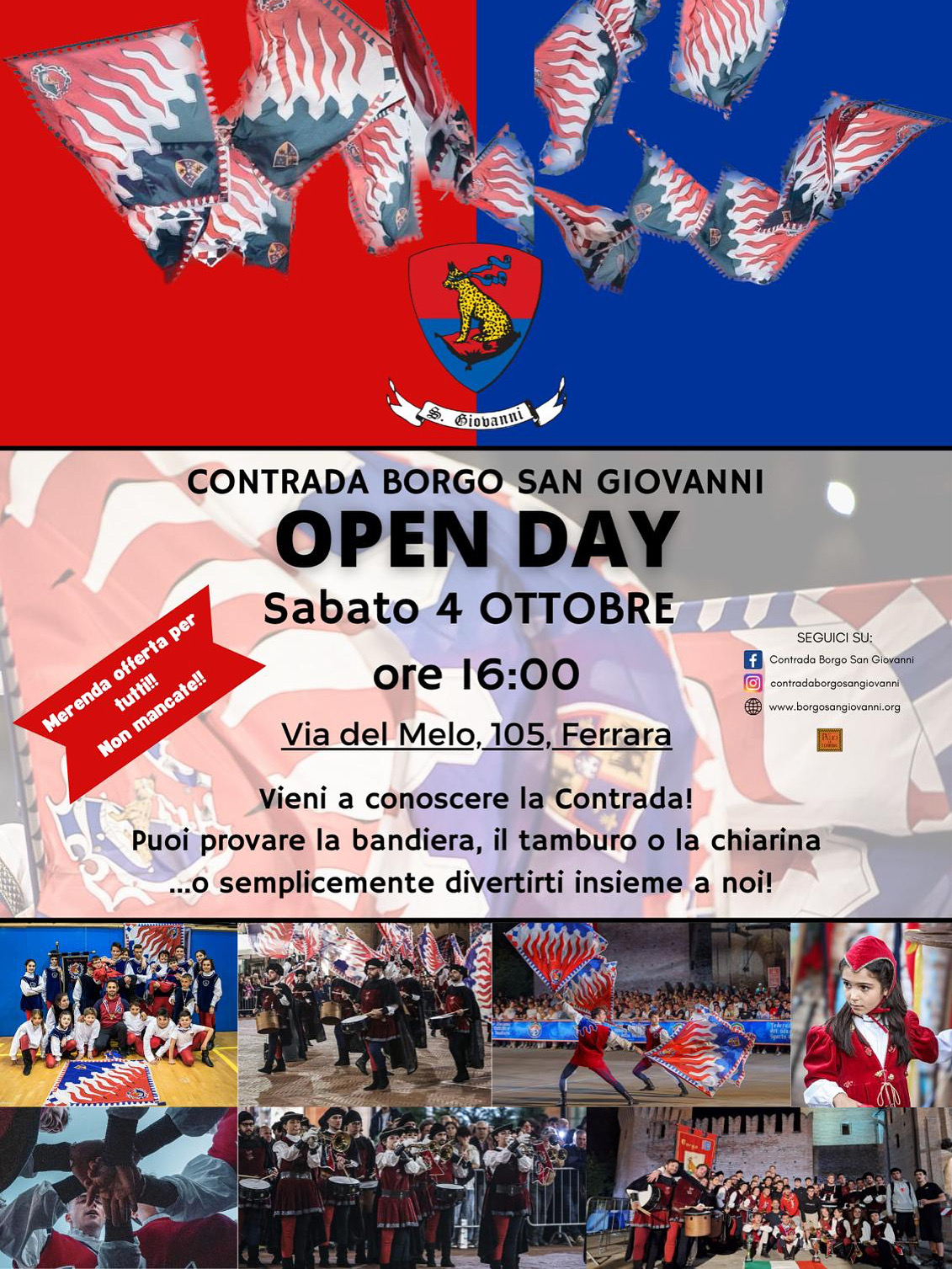 Vuoi imparare a sbandierare, suonare la chiarina o il tamburo? La contrada di Borgo San Giovanni lancia la giornata 'open day' di sabato 4 ottobre alle ore 16:00.