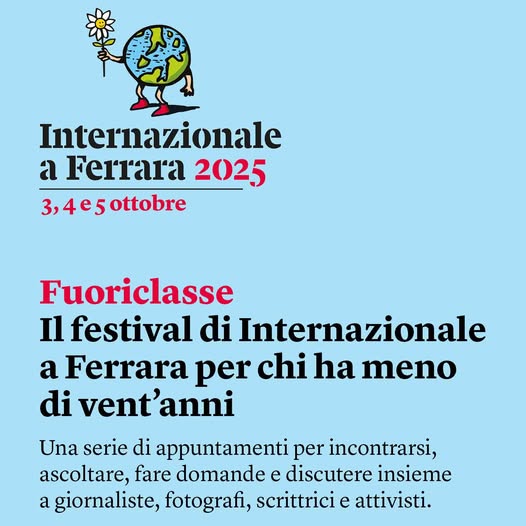 Quest'anno il Festival Internazionale a Ferrara si arricchisce di una nuova sezione tutta dedicata ai ragazzi dai 14 ai 19 anni. Si chiama "Fuoriclasse" e ad ospitarla sarà la bibilioteca comunale Casa Niccolini (via Romiti 13, Ferrara) con una serie di appuntamenti, sabato 4 e domenica 5 ottobre 2025, "per incontrarsi, ascoltare, fare domande e discutere insieme a giornaliste, fotografi, scrittirici e attivisti"