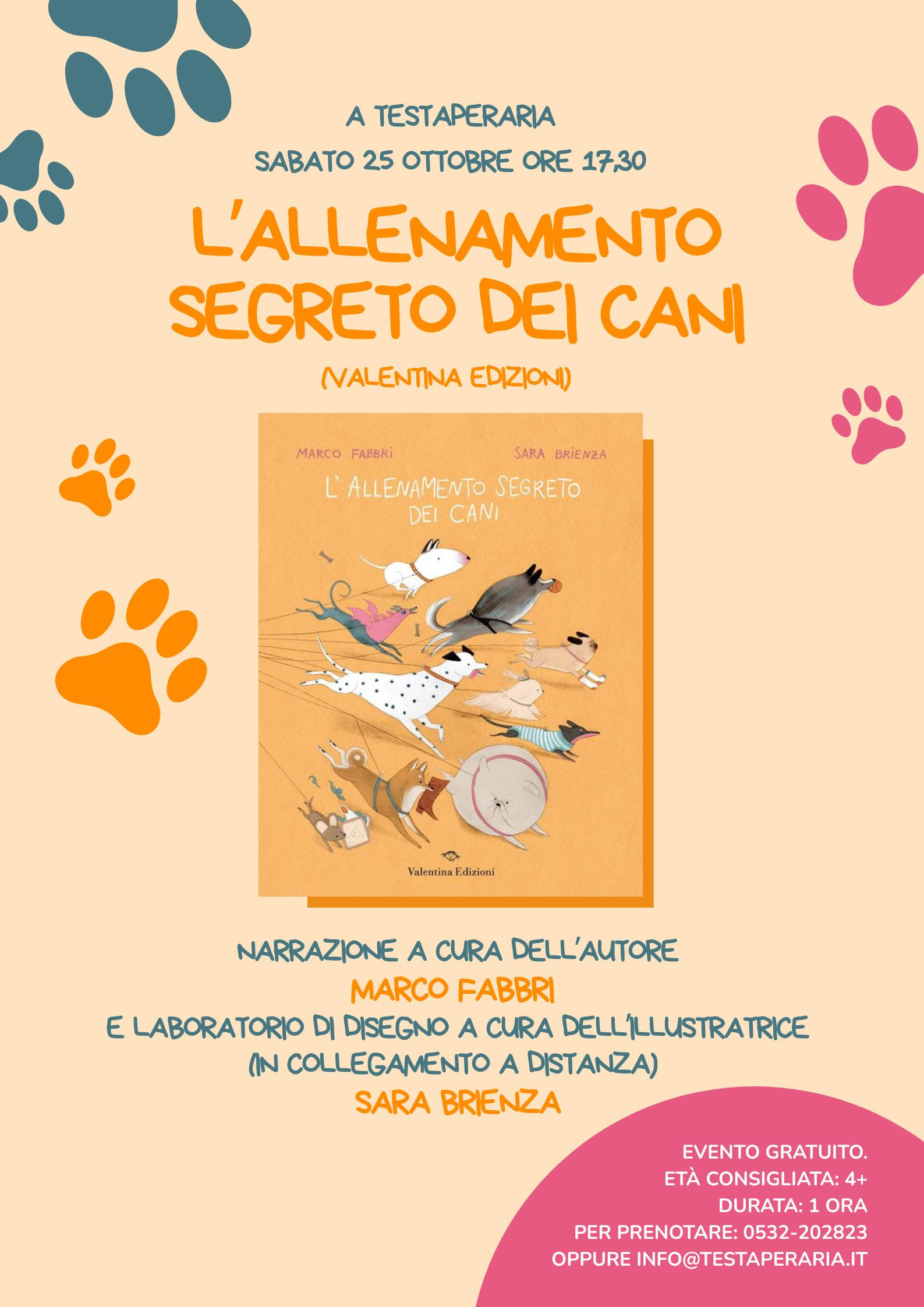 - Sabato 25 0ttobre 2025 alle 17:30 - "L'ALLENAMENTO SEGRETO DEI CANI". Presentazione del libro di Valentina Edizioni. Narrazione a cura dell'autore Marco Fabbri e laboratorio di disegno a cura dell'illustratrice (in collegamento a distanza), Sara Brienza. Tutti dicono che i cani somigliano ai loro padroni. Ma nessuno sa cosa si nasconde dietro questa incredibile affinità. È arrivato il momento di scoprirlo insieme. Evento gratuito, rivolto a bambini dai 4 anni e durata di 1 ora.
