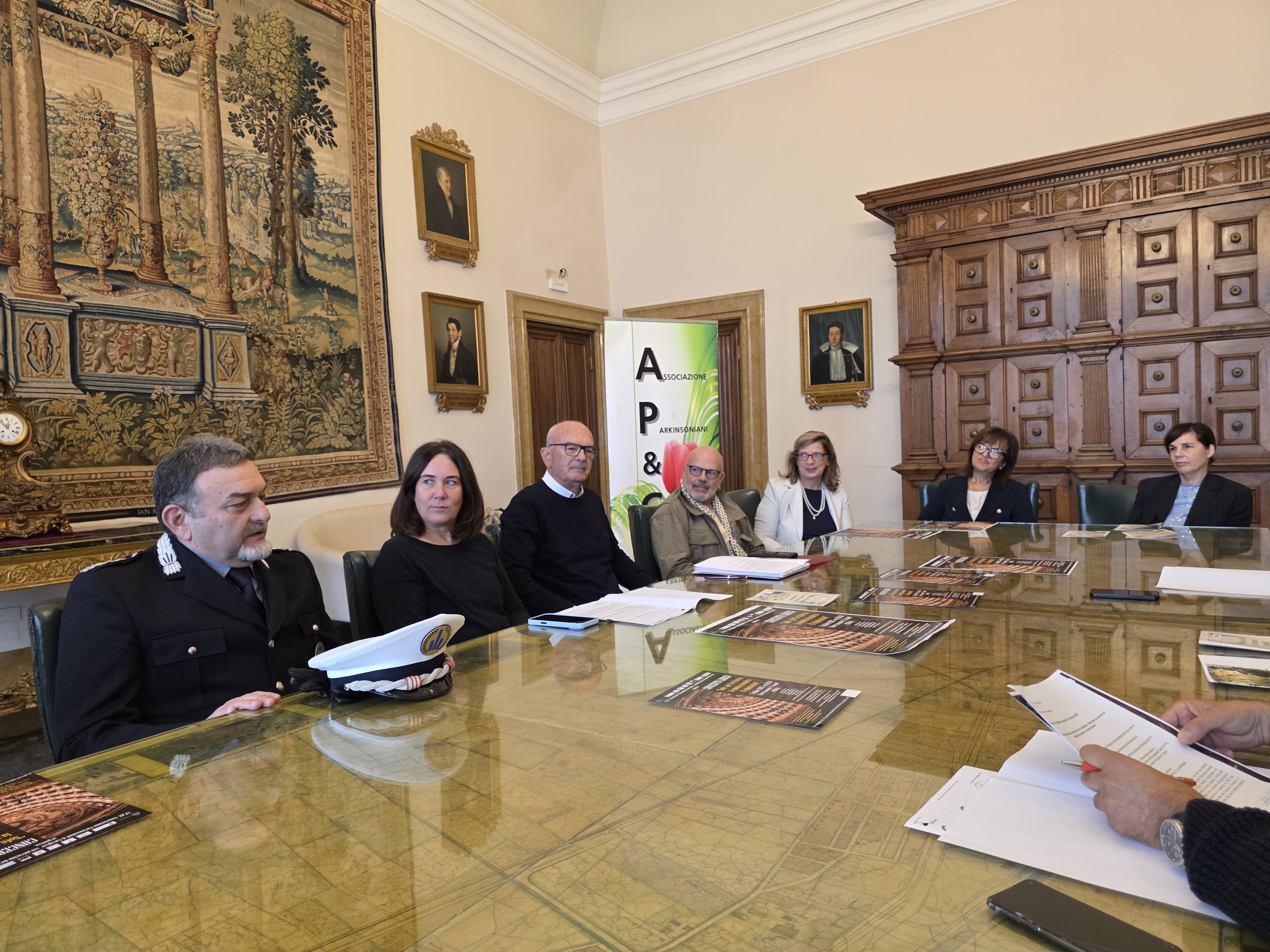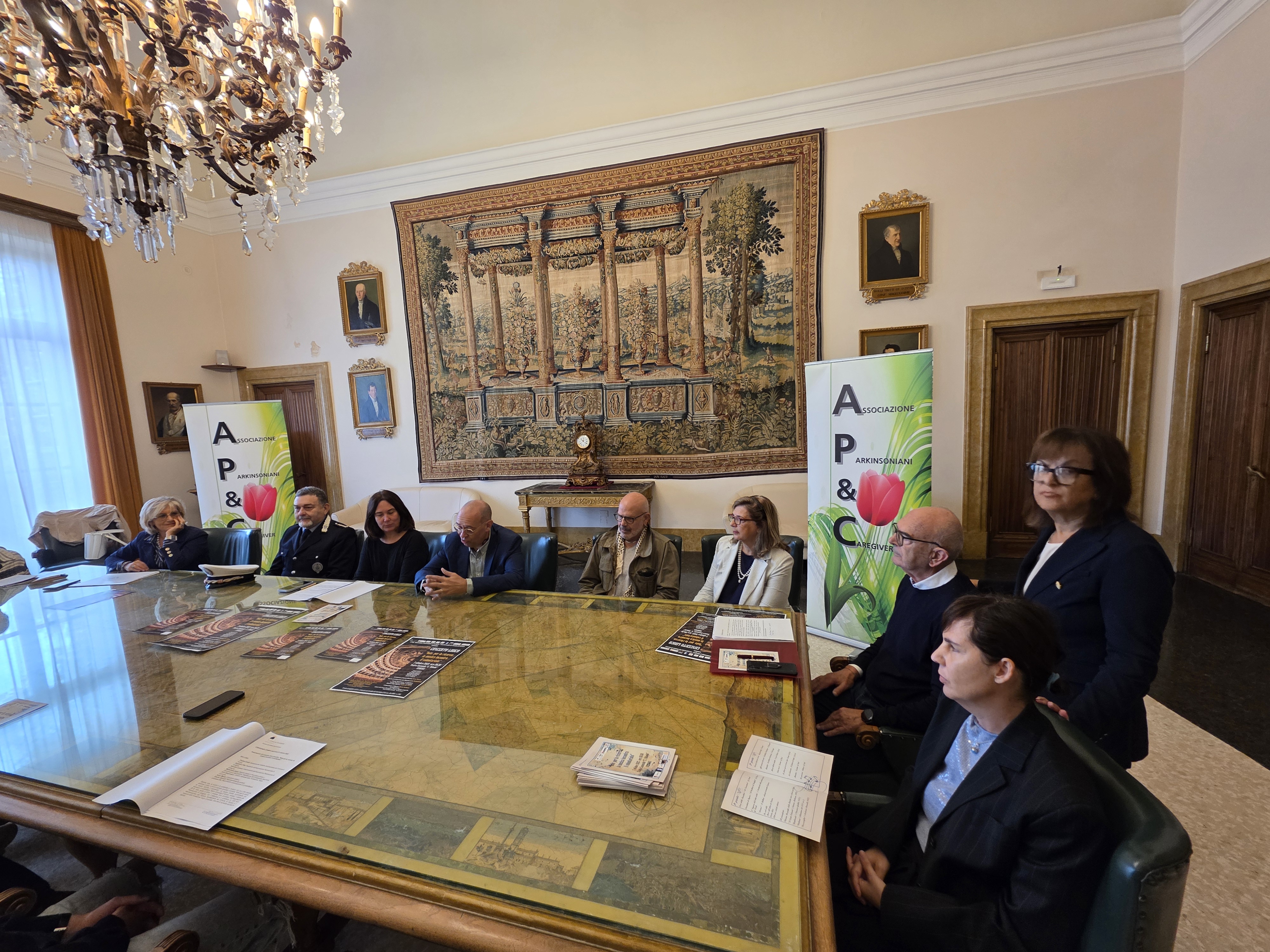 Nella foto di gruppo: l'assessore Cristina Coletti, al centro insieme al presidente di Ap&C Guglielmo Piva, insieme ai rappresentanti dell'associazione, al Dg del Teatro Carlo Bergamasco, ai rappresentanti degli artisti e alcuni sostenitori