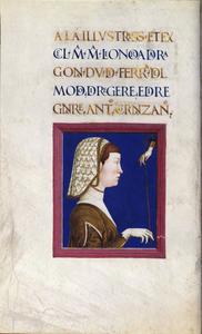 Nella foto - scaricabile in fondo alla pagina - ritratto di Eleonora d'Aragona dal manoscritto 'Il modo di regere e di regnare' di Antonio Cornazzano