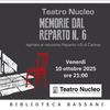 Si intitola "Memorie dal reparto n. 6" lo spettacolo a cura del Teatro Nucleo sul tema della salute mentale, che venerdì 10 ottobre 2025 alle 21:00 sarà ospitato dalla biblioteca comunale Bassani (via Grosoli 42, Barco, Ferrara). Regia e drammaturgia sono di Horacio Czertok e Cora Herrendorf, in scena Daniele Giuliani.