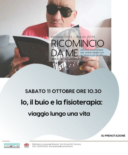 BIBLIOTECA BASSANI - "Ricomincio da me": sabato 11 ottobre 2025 alle 10:30 incontro in via Grosoli 42 (Barco - Ferrara). Aperte le iscrizioni