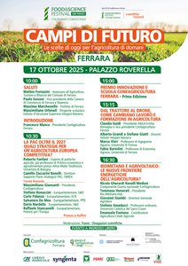 "L'agricoltura è un settore strategico per lo sviluppo sostenibile, economico e sociale del nostro territorio - ha affermato Angela Travagli, assessore comunale alle Politiche del Lavoro -. Con ‘Campi di futuro' ribadiamo quanto sia fondamentale compiere oggi scelte lungimiranti, capaci di coniugare innovazione, tutela ambientale e competitività. Come istituzioni, abbiamo il dovere di accompagnare il cambiamento, sostenere le imprese agricole e investire in conoscenza e ricerca: solo così costruiremo un'agricoltura all'altezza delle sfide globali, vicina ai cittadini e alle nuove generazioni. Un grazie a Confagricoltura per aver organizzato per il quarto anno il Festival Food&Science nella città di Ferrara trasformandola in un laboratorio di sperimentazione".