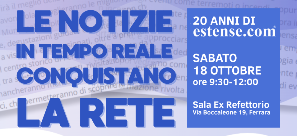 Sabato 18 ottobre 2025 dalle 9:30 alle 12:00 alla Sala Ex Refrettorio (via Boccaleone 19) si terrà il convegno "Le notizie in tempo reale conquistano la rete". L'iniziativa, organizzata da Assostampa e Scoop Media Edit, ha il patrocinio del Comune di Ferrara ed è aperta alla cittadinanza.