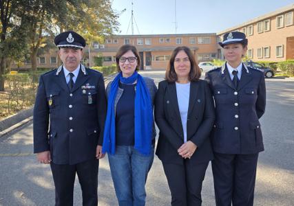 Nella foto, da sinistra: Gabriele Celli (Comandante); Maria Martone (direttrice del carcere di Ferrara); Cristina Coletti (Assessore comunale alla Sicurezza); Francesca Montani (Vicecomandante)