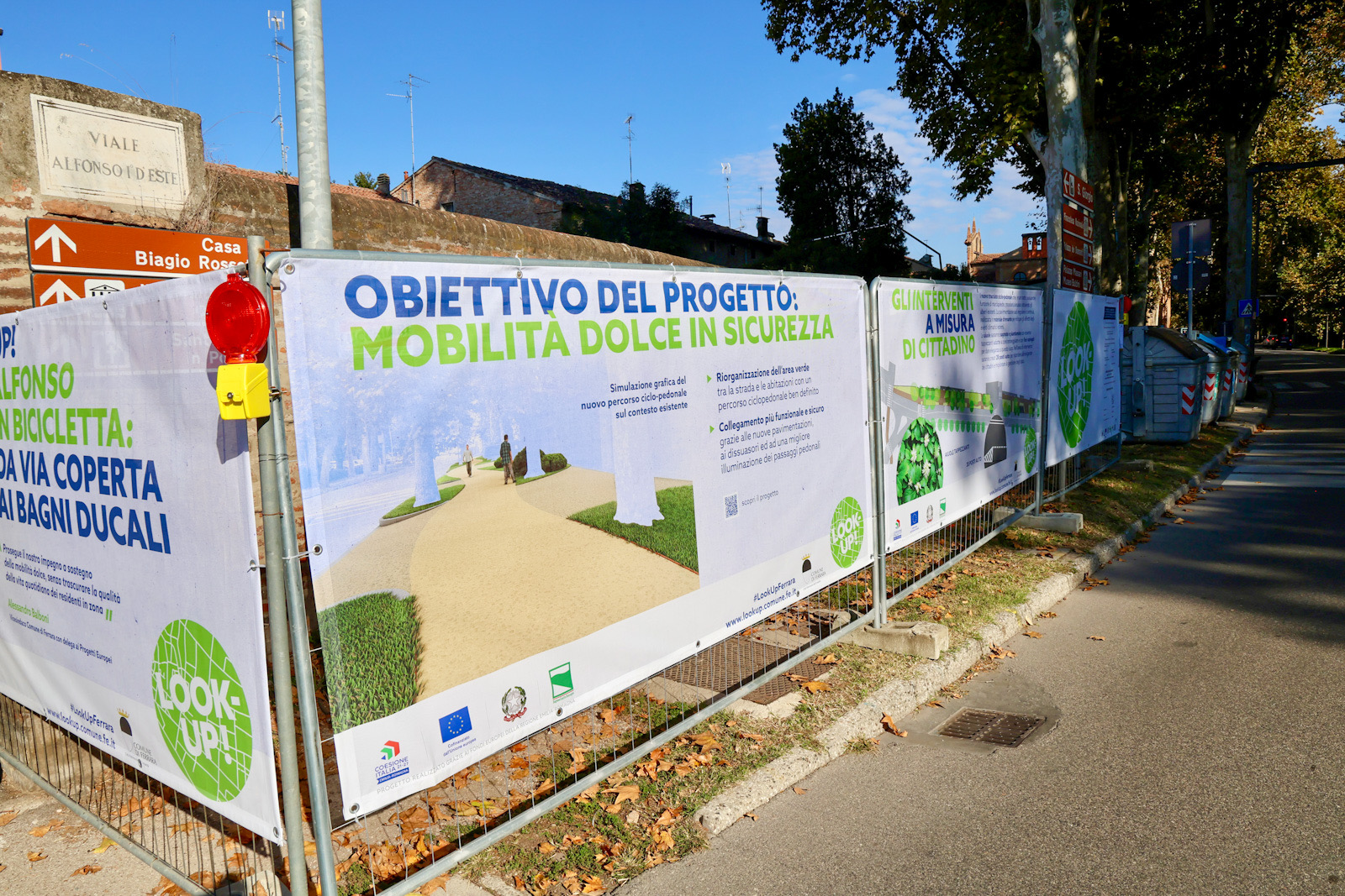 "Uno degli elementi chiave del progetto Look up! - ha sottolineato il vicesindaco e assessore ai Progetti europei Alessandro Balboni - è la sua capacità di mettere a sistema tutti gli interventi, senza che essi rimangano isolati e poco accessibili, rigenerando invece un intero comparto della città. Per questo abbiamo voluto investire anche sul sistema di collegamenti ciclabili e pedonali, che valorizzano Ferrara. La ciclabile di Alfonso d'Este, il cui cantiere inizia oggi, permetterà di raggiungere agevolmente e in sicurezza quest'area di città, in cui sono presenti la delizia dei Bagni ducali e il polo della creatività al Centro Slavich. Con questo intervento potenzieremo l'illuminazione, e porteremo decoro e ordine all'area, affrontando contemporaneamente il problema del parcheggio selvaggio realizzando nuovi 28 posti auto".