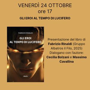 E' una lotta tra il bene e il male quella raccontata da Fabrizio Rinaldi nel libro dal titolo "Gli eroi al tempo di Lucifero" che venerd' 24 ottobre 2025 alle 17:00 sarà presentato nella sala Agnelli della biblioteca comunale Ariostea (con temporaneo ingresso da via Romiti 13, Ferrara).