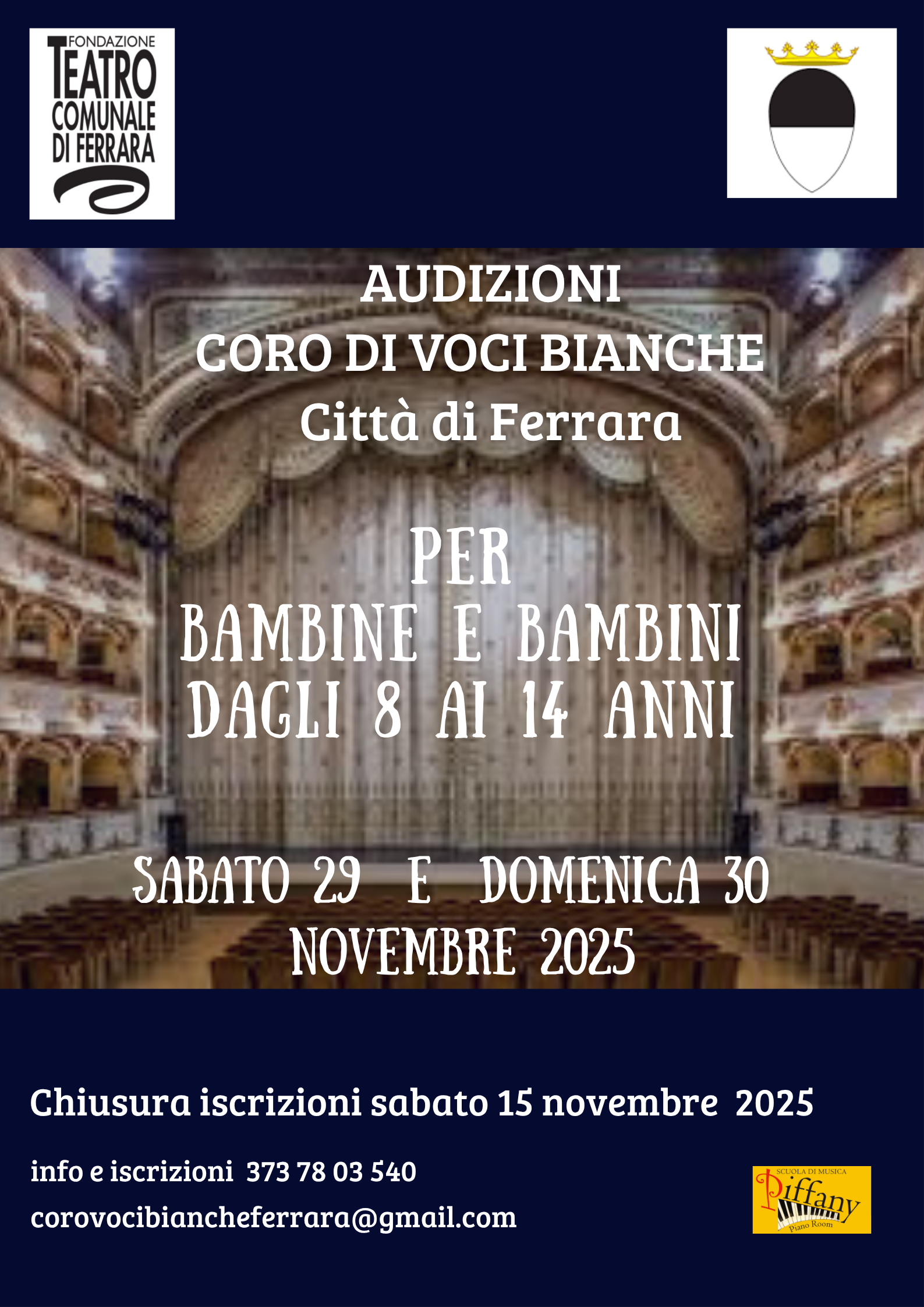 Ferrara si prepara a far risuonare le voci dei più piccoli: il Teatro Comunale Claudio Abbado ha annunciato l'avvio delle selezioni per costituire il Coro di Voci Bianche della Città di Ferrara, un progetto artistico ed educativo patrocinato dal Comune di Ferrara.