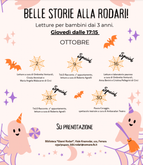 BIBLIOTECA RODARI - Giovedì 30 ottobre 2025 alle 17:15 spettacolo per bambini dai 3 ai 10 anni in viale Krasnodar 102 a Ferrara. Aperte le iscrizioni