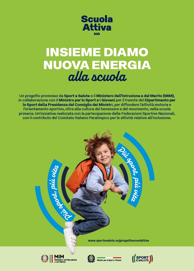 Dopo aver coinvolto oltre 2.200.000 studenti, 112.000 classi e 12.300 scuole in tutta Italia, tornano anche per l'anno scolastico 2025-2026 i progetti "Scuola Attiva Kids" e "Scuola Attiva Junior", con una novità in arrivo: il lancio imminente di "Scuola Attiva Infanzia" interamente dedicato agli alunni più piccoli.