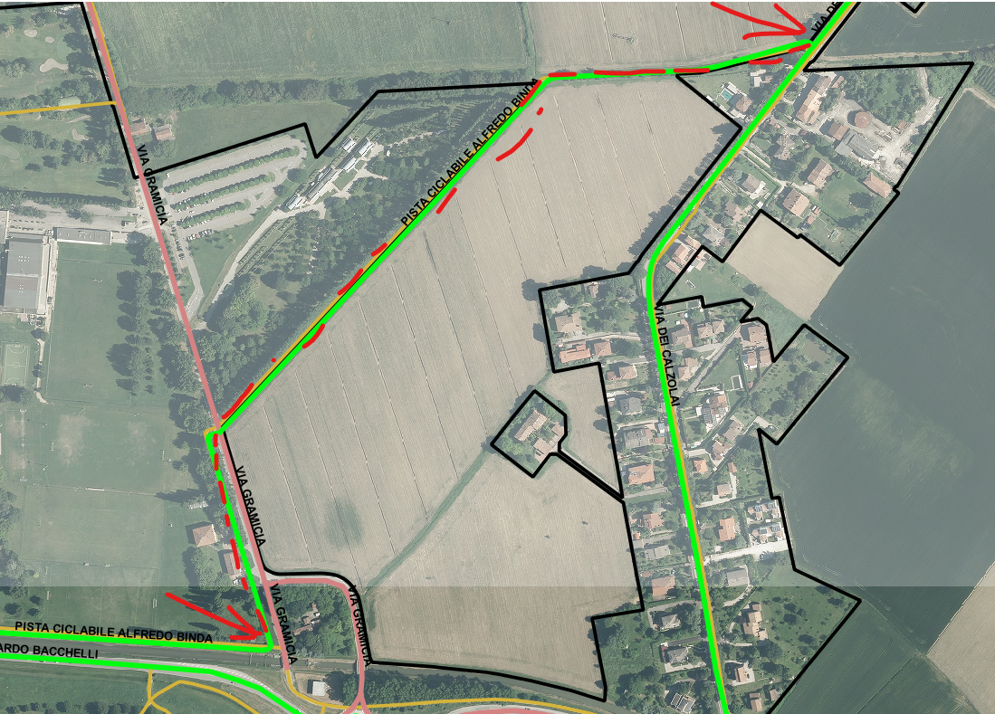 3. Via Gramicia tra via Bacchelli e l'attraversamento ciclopedonale adiacente il campeggio comunale;
