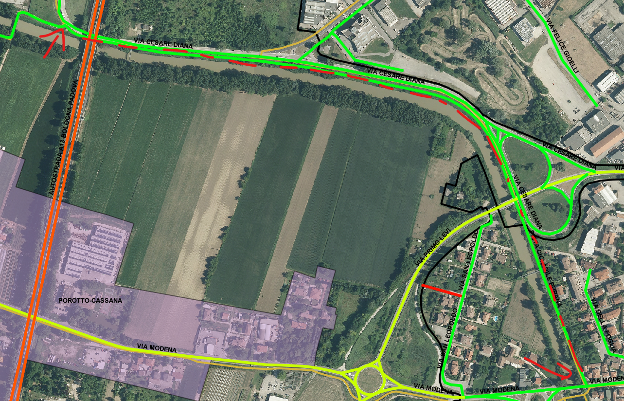 1. Via Cesare Diana tra l'intersezione con via P.Levi e l'accesso alla ciclabile di via Modena;