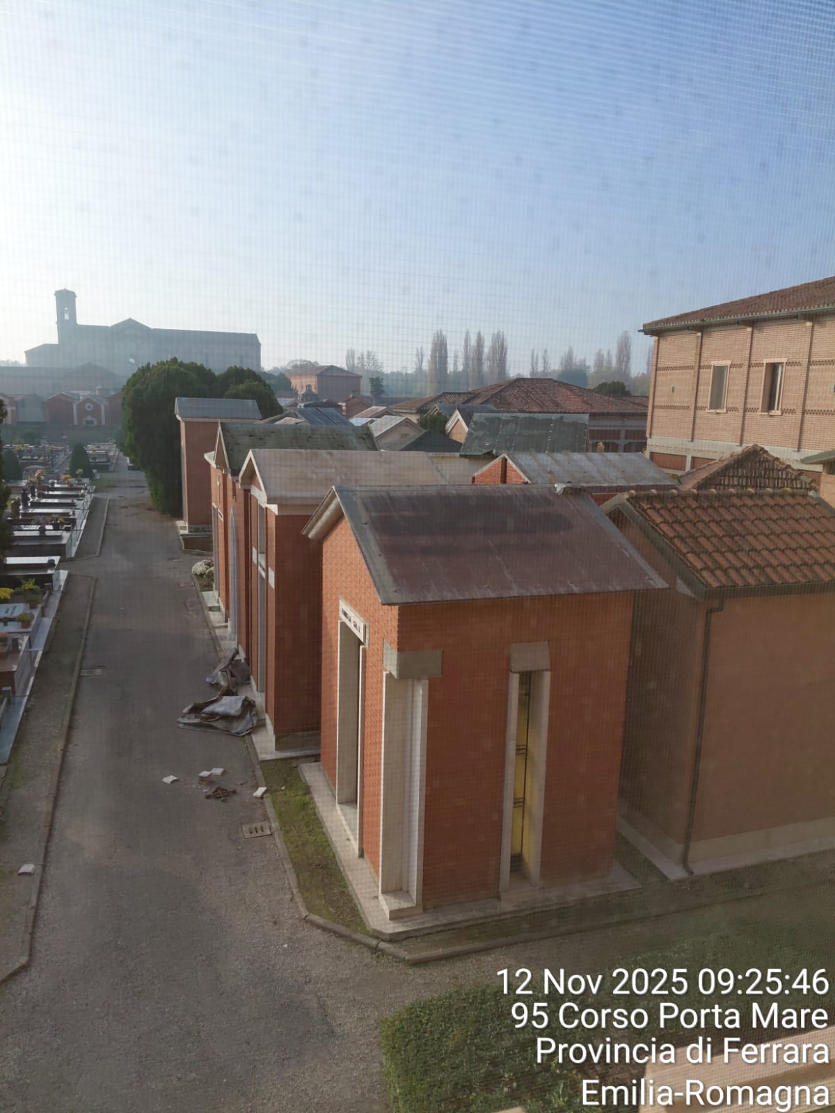 Nelle foto - scaricabili in fondo alla pagina - documentazione dei danneggiamenti alla Certosa di Ferrara