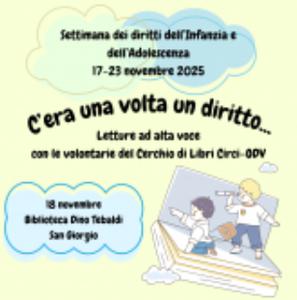 Saranno dedicate al tema dei diritto dei bambini le letture ad alta voce, per bambini dai 3 ai 10 anni, in programma martedì 18 novembre 2025 alle 17:00 alla biblioteca comunale Dino Tebaldi di Ferrara (via Ferrariola 12, zona San Giorgio, Ferrara). L'appuntamento sarà curato dalle volontarie del Cerchio di Libri Circi ODV.