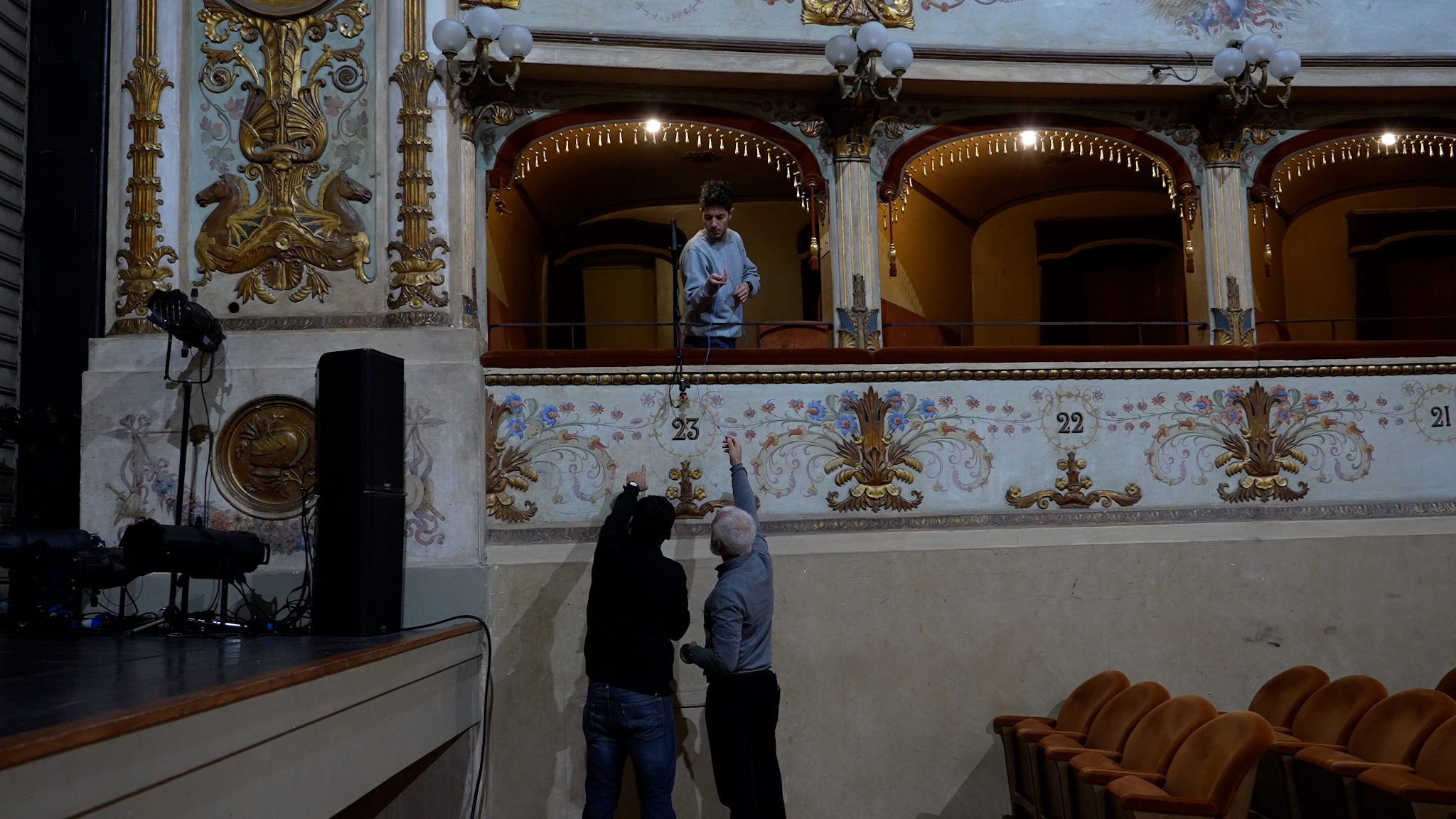 29 ottobre 2025 - Misurazioni acustiche approfondite con l'impianto audio del Teatro: test in vari punti, differenti configurazioni di altoparlanti e subwoofer sospesi.