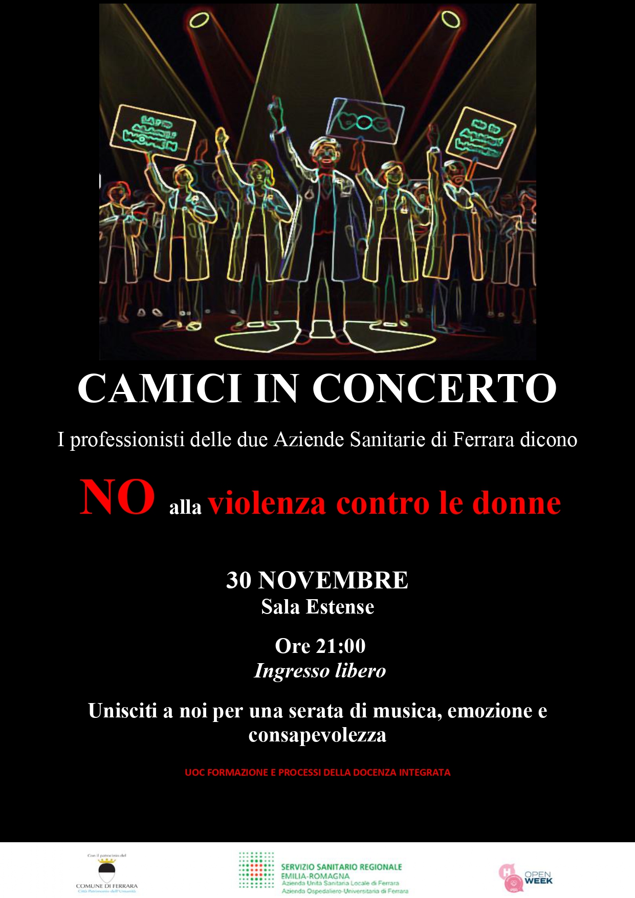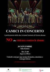Da qui l'idea di proporre un concerto che possa coinvolgere il pubblico attraverso la forza espressiva della musica, delle parole e della presenza diretta di professionistisanitari che, nella loro attività quotidiana, sono chiamati a prendersi cura delle persone ea riconoscere e contrastare situazioni di abuso e maltrattamento.Il concerto è ideato, organizzato e realizzato da un gruppo di operatrici e operatoridella sanità pubblica ferrarese, provenienti da diverse realtà sanitarie: medici,infermieri, psicologi, operatori sociosanitari e altri professionisti dell'Azienda USL edell'Azienda Ospedaliero-Universitaria di Ferrara che, condividendo le propriecompetenze musicali, si sono messi a disposizione per costruire una serata che alternaesibizioni dal vivo a letture e interventi tematici per lanciare un messaggio forte echiaro: NO alla violenza contro le donne.