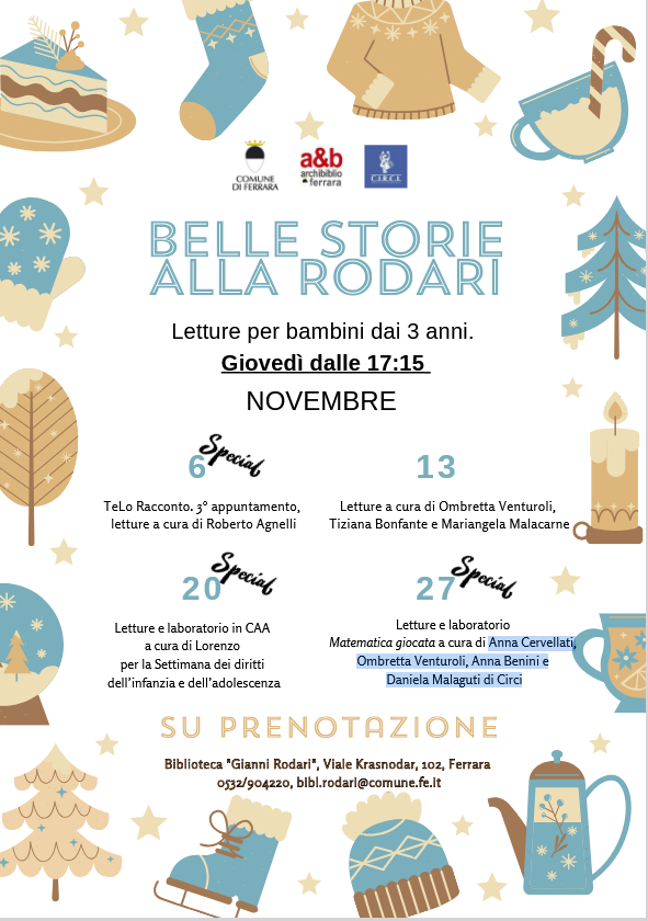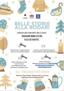 Tornano alla biblioteca comunale Rodari di Ferrara (viale Krasnodar 102) le "Belle Storie" per i più piccoli. L'appuntamento di giovedì 27 novembre 2025 alle 17:15, sarà curato da Anna Cervellati,