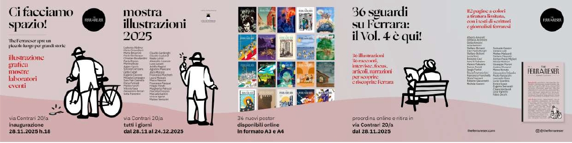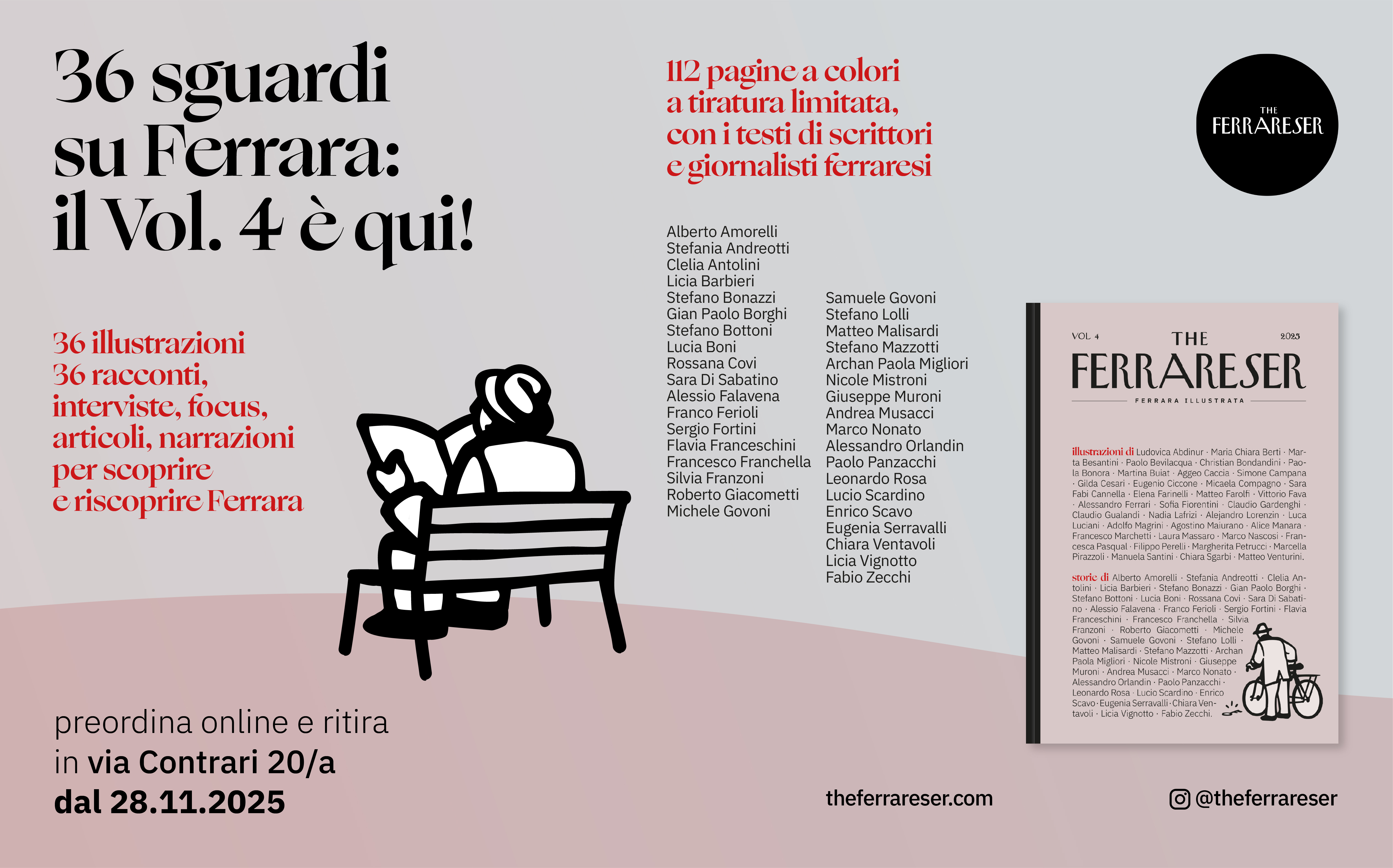 Tornano le copertine illustrate di The Ferrareser, che per il quarto anno consecutivo proporrà una mostra di illustrazioni sulla città curata da 36 artisti del territorio e la pubblicazione di una rivista cartacea che raccoglie oltre alle opere altrettanti articoli e racconti a cura di alcuni scrittori e giornalisti ferraresi. Il piccolo spazio espositivo verrà inaugurato venerdì 28 novembre alle ore 18 in via Contrari 20/a e i dettagli del progetto "The Ferrareser 2025" sono stati illustrati mercoledì 26 novembre 2025 in residenza municipale, nel corso di una conferenza stampa, che ha visto gli interventi di Matteo Fornasini, assessore comunale alla Promozione del territorio e di Eugenio Ciccone, presidente The Ferrareser APS.