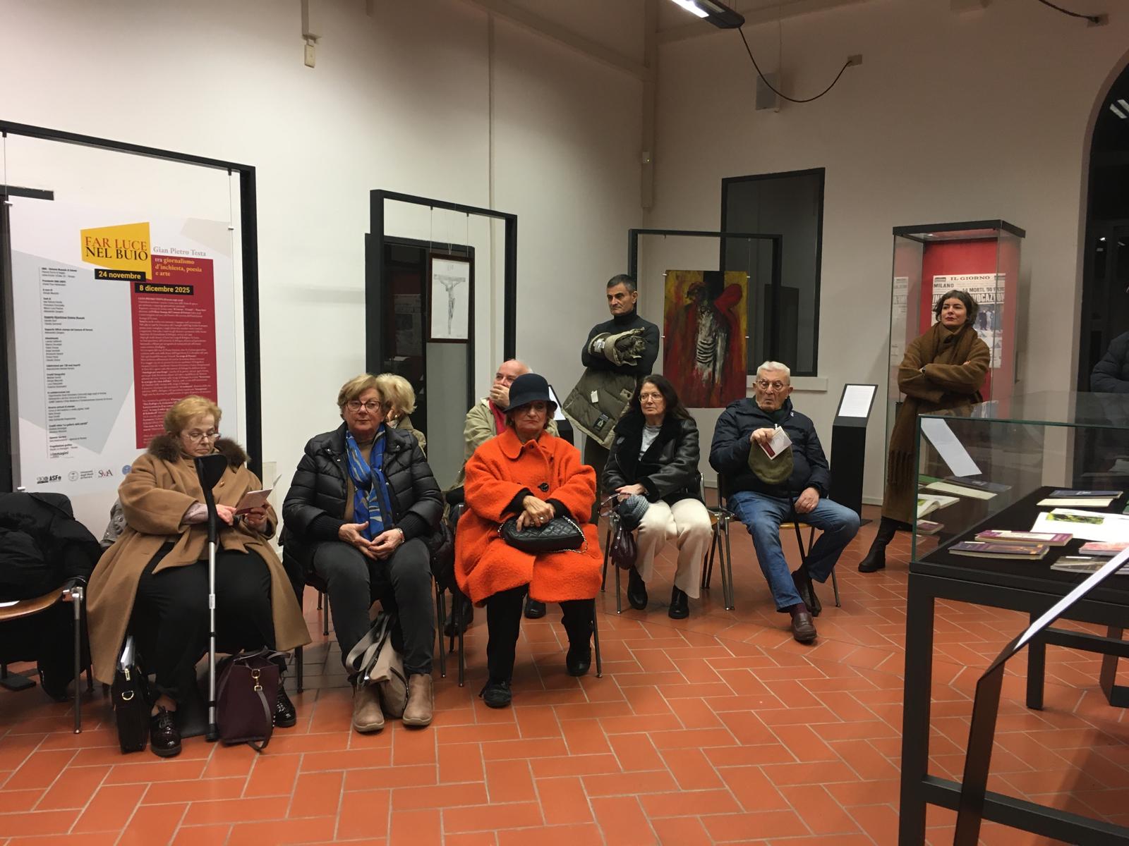 Al vernissage di lunedì hanno partecipato tante persone che hanno avuto modo di conoscere Testa (nato a Ferrara nel 1936, dove è morto il 7 gennaio 2023), estimatori del suo lavoro, ma anche studenti dell'Università di Ferrara che hanno preso parte attiva alla ricerca sulle fonti giornalistiche, rintracciando tra biblioteche e archivi le pagine originali dove comparvero le sue inchieste sulle stragi che hanno insanguinato l'Italia tra il 1969 e il 1980.