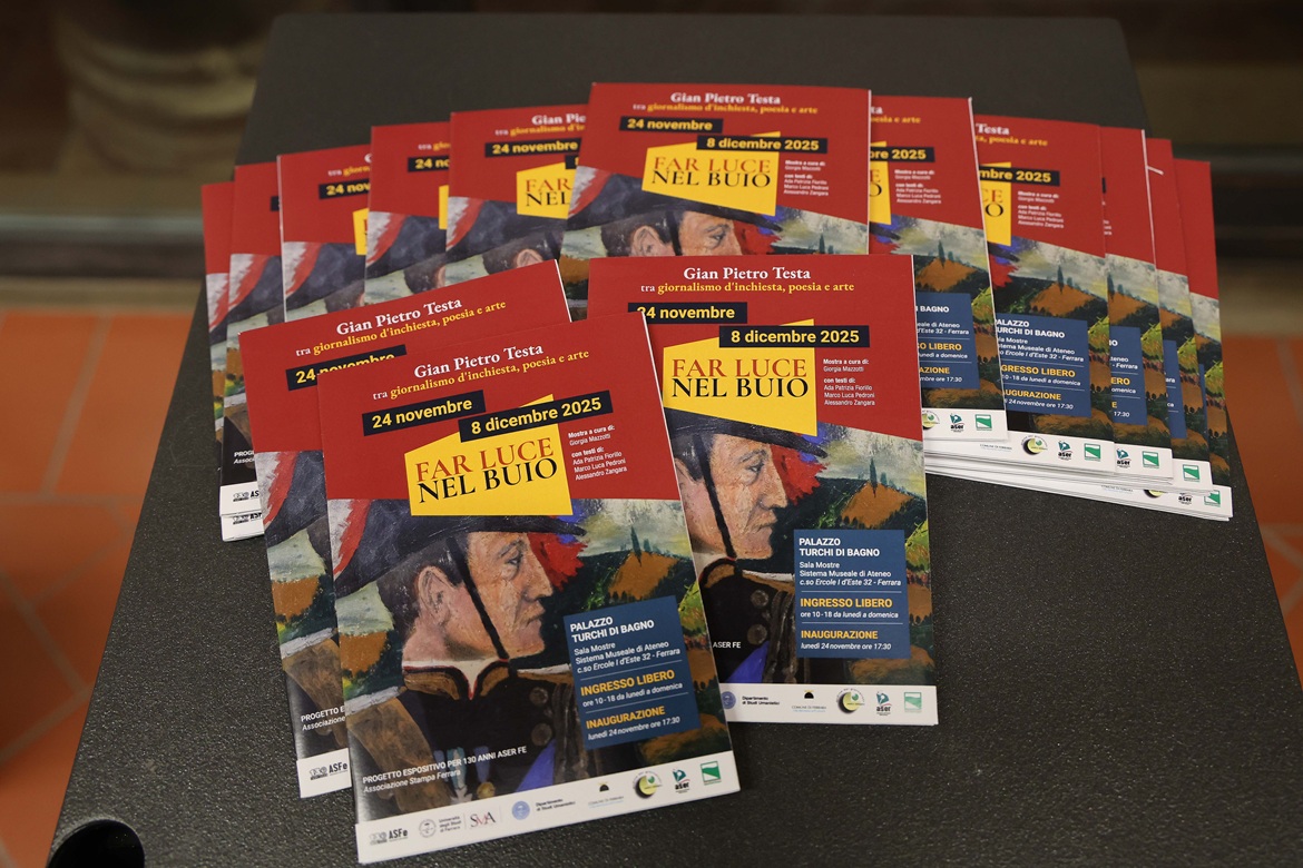 Una rassegna espositiva che mette insieme dipinti, disegni, pagine di giornale, saggi, raccolte poetiche e narrativa per raccontare la poliedrica personalità del giornalista ferrarese Gian Pietro Testa. Intitolata "Far luce nel buio: GPT tra giornalismo d'inchiesta, poesia e arte", la mostra è stata inaugurata nel pomeriggio di lunedì 24 novembre 2025 a Palazzo Turchi di Bagno (corso Ercole I d'Este 32, Ferrara), dove rimarrà visitabile con ingresso libero fino a lunedì 8 dicembre con orario continuato 10-18 tutti i giorni, festivi inclusi. Sabato 29 novembre alle 16:30, sempre nella sala espositiva di Unife, situata di fronte al Palazzo dei Diamanti di Ferrara, è in programma un momento di incontro con la curatrice, gli autori dei testi e delle scelte grafiche di allestimento, con la partecipazione del figlio Enrico Testa che si collegherà da Roma.