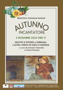 L'evento, dal titolo "Delitto e potere a Ferrara: l'altra verità di Ugo e Parisina", è a cura della Biblioteca Bassani in collaborazione con Antonio Vaianella e Cinzia Preziosi, che guideranno il pubblico in una rilettura dei fatti storici e delle fonti documentarie sul tema.