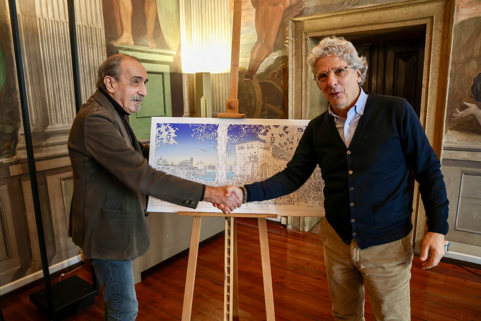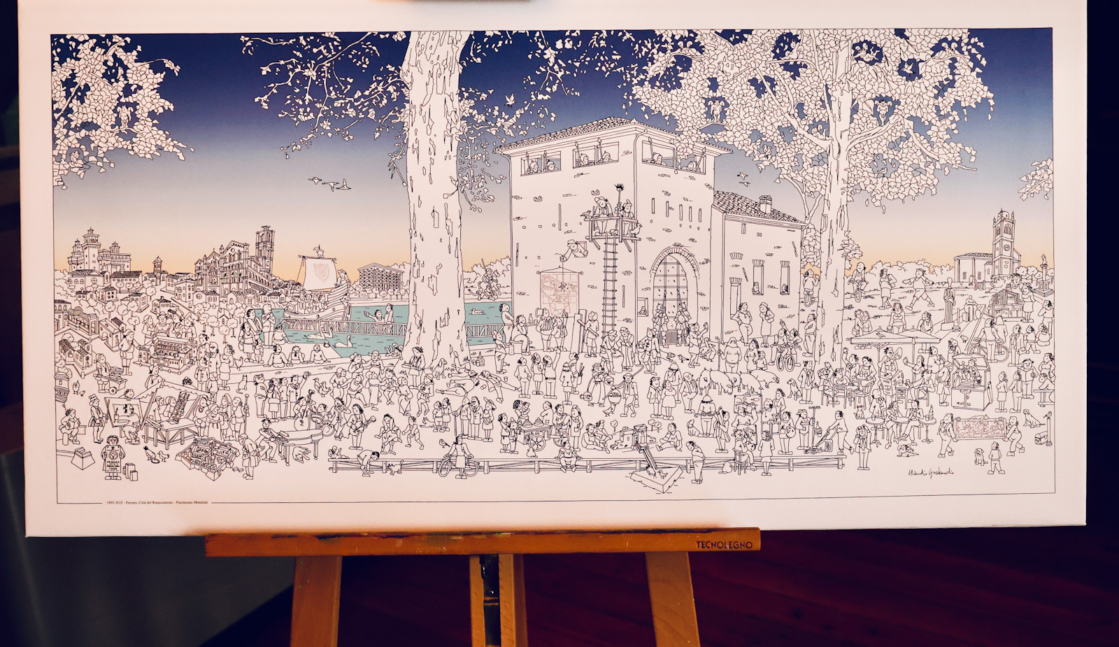 Un'illustrazione di Claudio Gualandi celebra 30 anni di riconoscimento Unesco per Ferrara