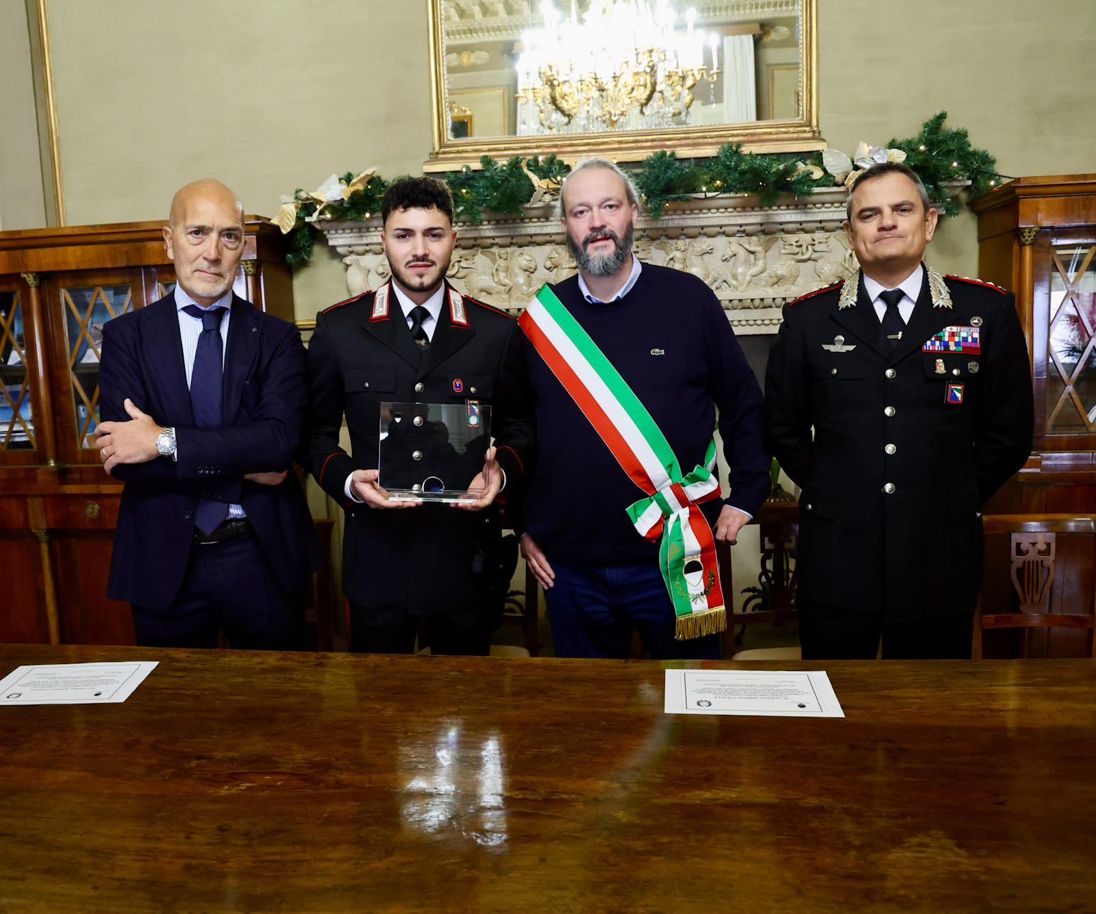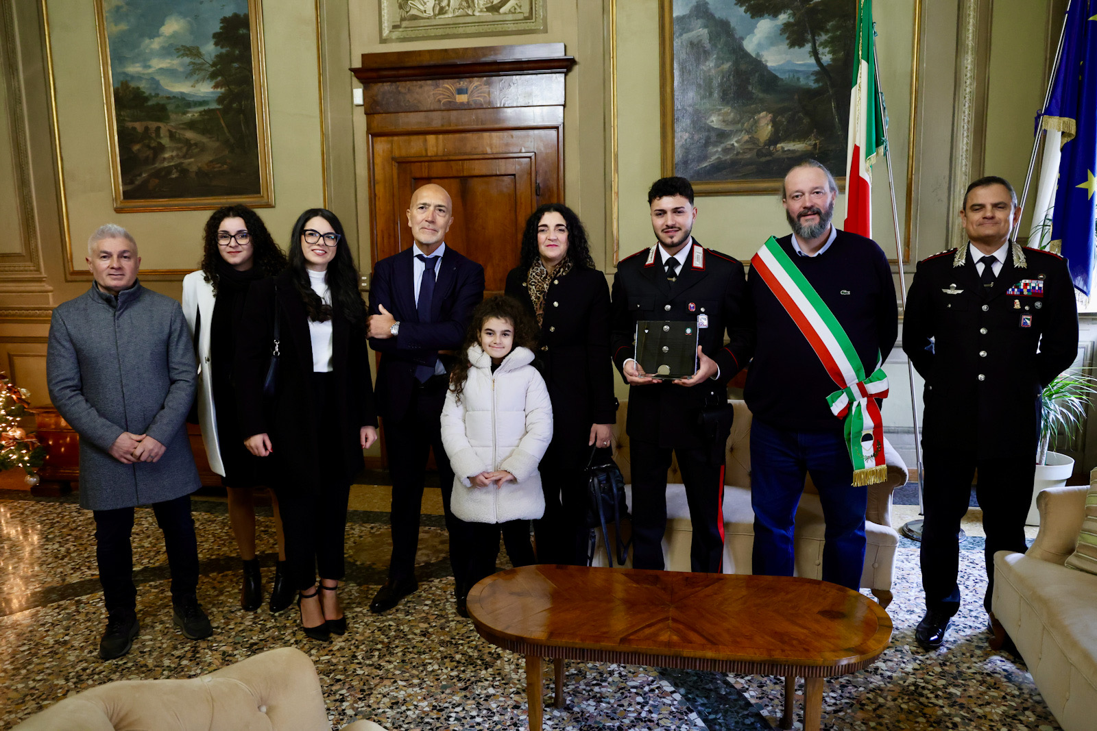 Al carabiniere Adriano Colella una targa di riconoscimento per l'eroico salvataggio compiuto nelle acque del Castello Estense