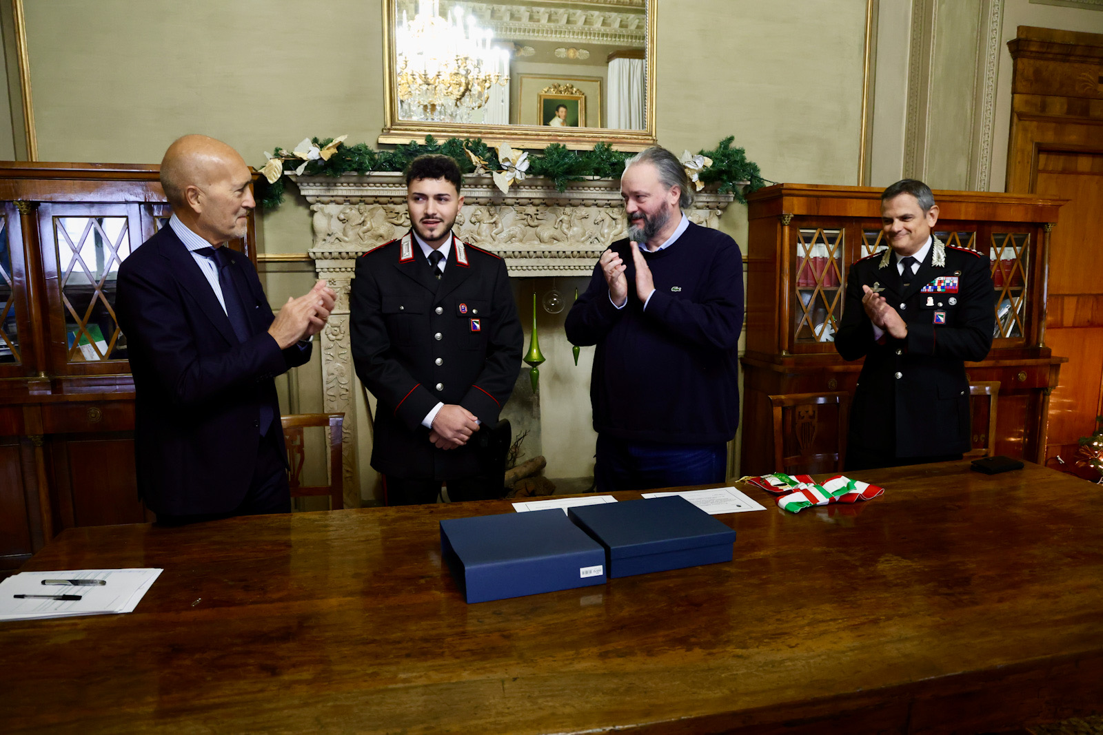 Con immenso orgoglio, il Prefetto e il Sindaco di Ferrara si congratulano per il gesto eroico compiuto nel salvataggio di una giovane donna che si era lanciata nelle acque del Castello Estense, riconoscendo, nel coraggio dimostrato e nel senso di altruismo, i grandi ideali che appartengono all'Arma dei Carabinieri quotidianamente impegnati in azioni di valore a supporto delle Comunità.