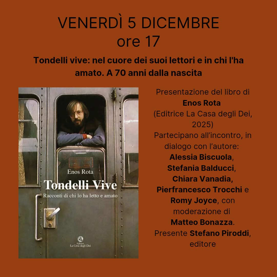 E' un invito a scoprire o riscoprire l'opera dello scrittore, saggista e drammaturgo reggiano Pier Vittorio Tondelli, il libro di Enos Rota dal titolo "Tondelli vive. Racconti di chi lo ha letto e amato" che venerdì 5 dicembre alle 17:00 sarà presentato nella sala Agnelli della biblioteca comunale Ariostea (via delle Scienze 17, Ferrara).