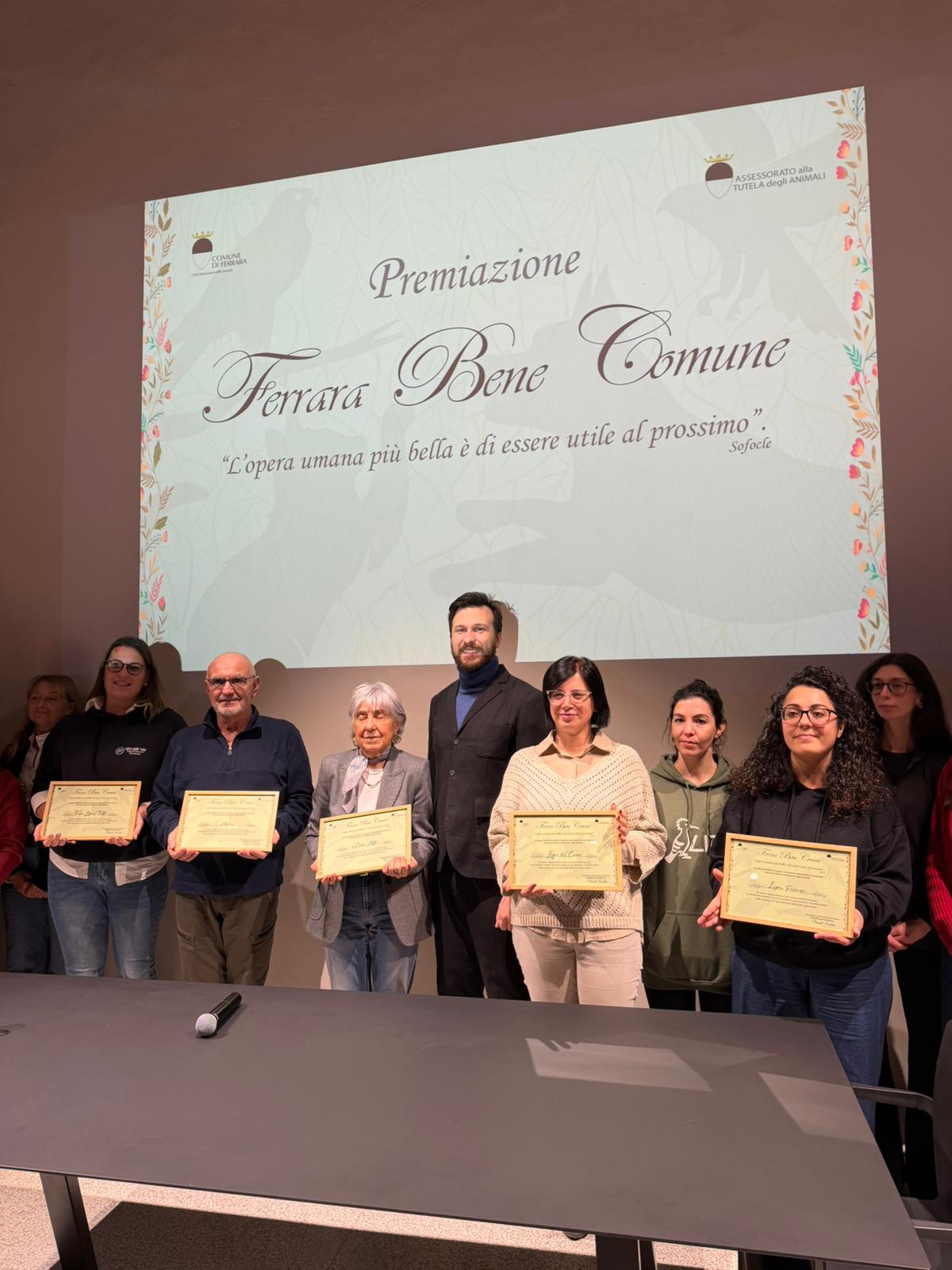La cerimonia di premiazione ha offerto anche l'occasione di riconoscere l'importante lavoro svolto dai volontari, rafforzando il messaggio che prendersi cura degli animali significa prendersi cura della comunità. "Il Premio "Ferrara Bene Comune" - ha spiegato il vicesindaco Balboni - è il nostro modo di ringraziare, a nome del Comune di Ferrara e di tutti i ferraresi, chi contribuisce, ogni giorno, a migliorare la qualità della vita nella nostra città".