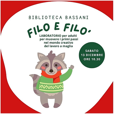 Alla biblioteca comunale Bassani torna l'atelier di lavoro a maglia "Filo e Filò", per adulti creativi, sabato 13 dicembre 2025 alle 10:30 (via Grosoli 42, Barco, Ferrara).