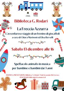 E' ispirato a uno dei più celebri romanzi di Gianni Rodari, lo spettacolo in musica dal titolo "La Freccia Azzurra. L'avventuroso viaggio di un trenino di giocattoli" che sabato 13 dicembre alle 16:00 sarà portato in scena da Chiara Marinoni ed Elisa Berselli alla biblioteca comunale Rodari di Ferrara (viale Krasnodar 102).