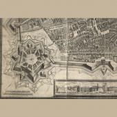 Andrea Bolzoni, straordinario incisore, nasce a Ferrara nel 1689. Rimasto orfano in giovane età, viene avviato all'arte del disegno e dell'incisione su rame e legno dallo zio Francesco. Si forma come artista sotto la guida del pittore Giacomo Parolini, attivo presso l'accademia del disegno, per ampliare poi le sue competenze artistiche visitando Toscana, Umbria, Marche e Roma. La principale attività del Bolzoni fu quella di eseguire molte incisioni raffiguranti dipinti ferraresi che, grazie alla data di esecuzione dei quadri riprodotti, offrono una preziosa documentazione sulla pittura ferrarese contemporanea anche per opere andate distrutte o disperse - come la Erodiade di Carlo Bononi, conservata nella chiesa di San Benedetto, bombardata poi nel 1944. Bolzoni, inoltre, lavorò per la zecca di Modena e quella di Ferrara battendo esemplari correnti di monete pontificie, con la predisposizione di intaglio di stampi di uso comune. Fondamentale rimane la sua attività di incisore di carte geografiche come la Carta degli Stati del serenissimo signor duca di Modena in Italia... di Domenico Vandelli (1746) e la monumentale Pianta ed alzato della città di Ferrara del 1747. Non era una semplice mappa ma un'opera d'arte di visione. Bolzoni non si limitò a riprodurre la città com'era, ma la ridisegnò completandola anche in quegli spazi rimasti incompleti. Della pianta furono eseguite quattro edizioni: 1747, 1768, 1782 e 1794. Solo la prima edita quando era ancora in vita l'incisore, morto a Ferrara il 19 ottobre 1760.