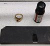 Nelle foto, l'auto rossa utilizzata dai truffatori fermata dagli agenti della Polizia Locale e l'anello contraffatto