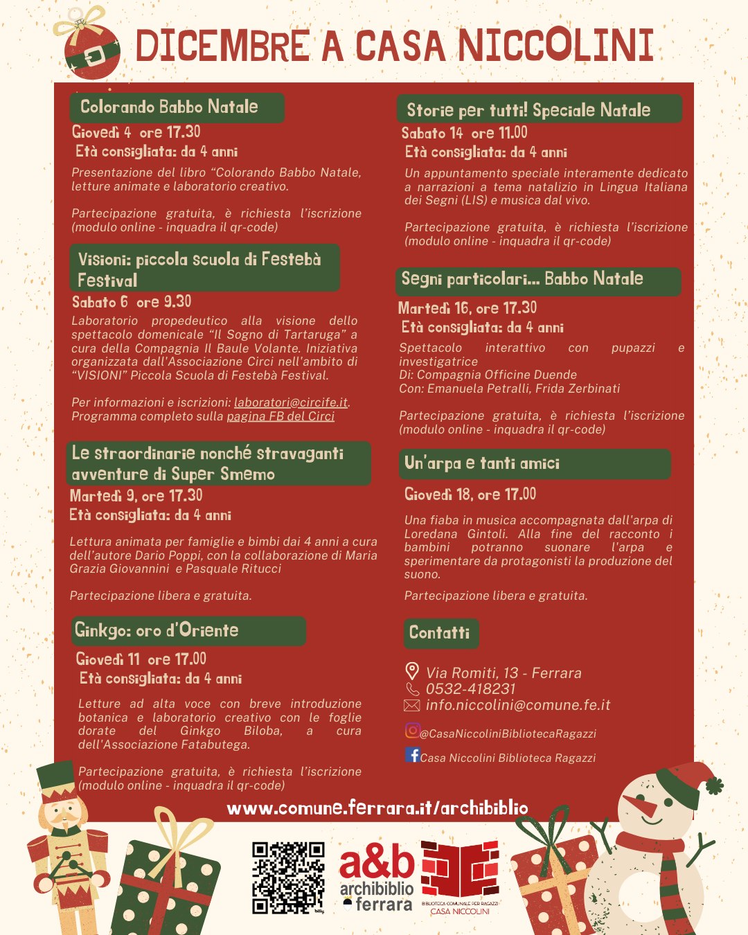 ►Tutte le iniziative della biblioteca comunale per bambini e ragazzi di Casa Niccolini alla pagina: https://archibiblio.comune.ferrara.it