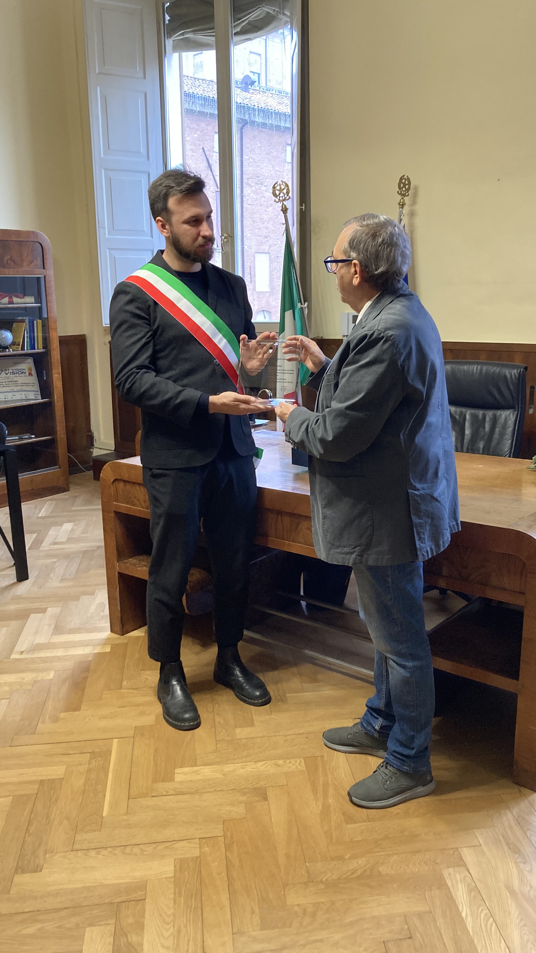 CONSEGNA TARGA - Il vicesindaco Alessandro Balboni ha incontrato in Comune il protagonista dell'azione di soccorso