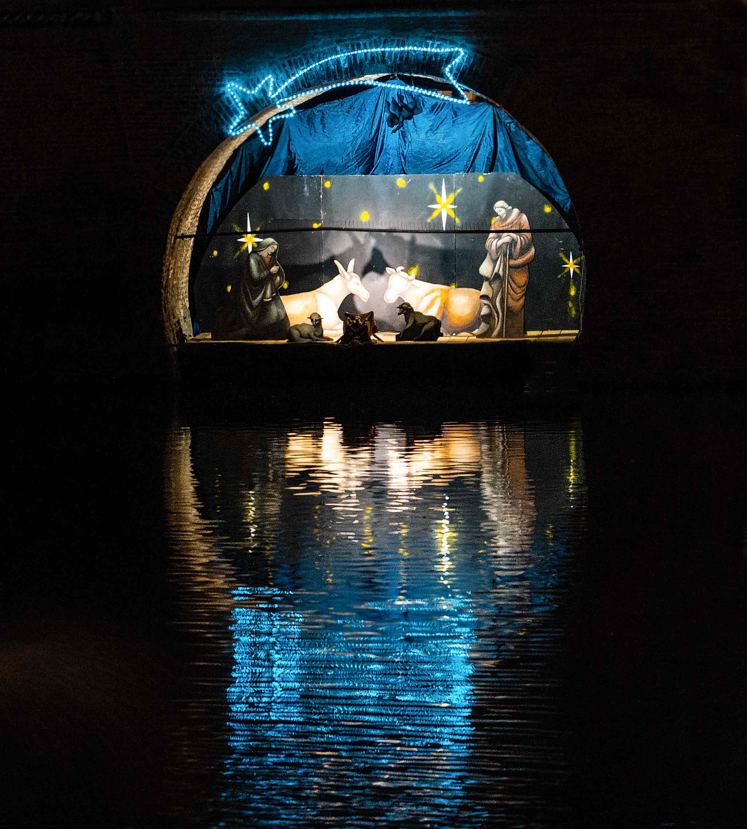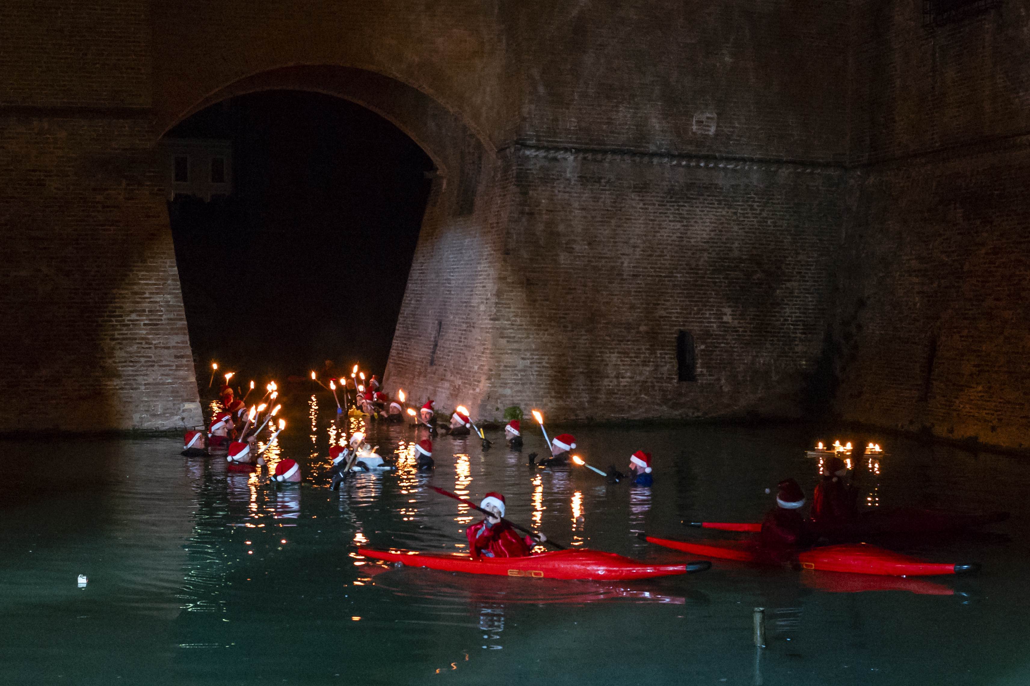 Come da tradizione, i sub del Gruppo Subacqueo Ferrarese daranno vita a un'emozionante fiaccolata subacquea, immergendosi nelle acque del fossato per deporre il Bambin Gesù nel presepe sommerso.