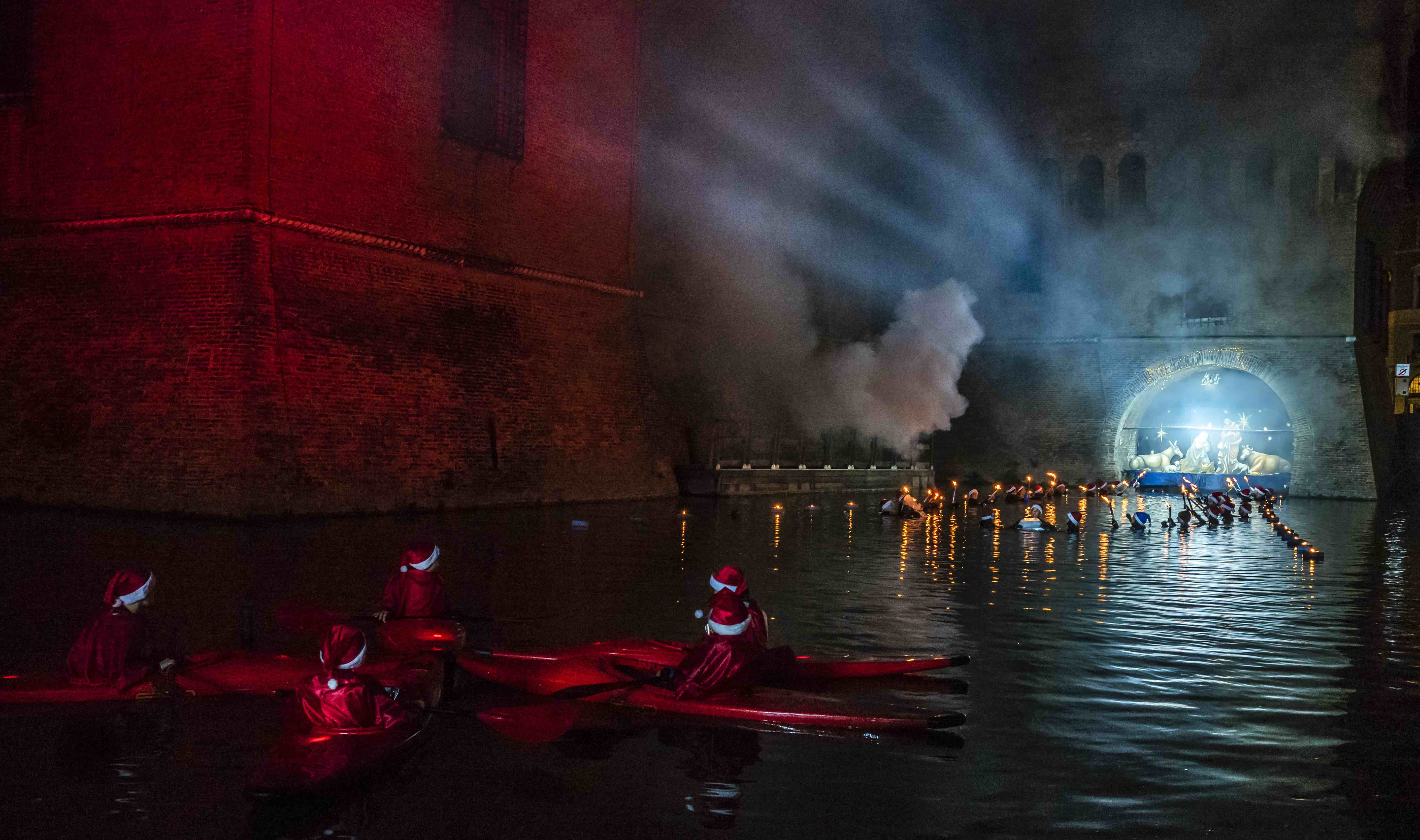 TORNA A FERRARA IL TRADIZIONALE SPETTACOLO DEL PRESEPE SULL'ACQUA NEL FOSSATO DEL CASTELLO