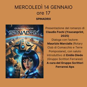 Ha come protagonisti due oggetti appartenenti alla necropoli etrusca di Spina il romanzo fantascientifico di Claudio Fochi dal titolo "Spinadrix" che mercoledì 14 gennaio 2026 alle 17:00 sarà presentato nella sala Agnelli della biblioteca comunale Ariostea (via Scienze 17, Ferrara).