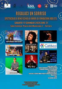 Ferrara si prepara ad accogliere la quinta edizione di "Regalaci un sorriso", lo spettacolo benefico che da anni unisce arte, intrattenimento e solidarietà. L'appuntamento è per sabato 17 gennaio 2026 alle 21 nella Sala Estense (piazza Municipio 14, Ferrara), per una serata all'insegna del divertimento e della condivisione.