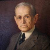 Didascalia immagine: Giovan Battista Crema, Ritratto di Giuseppe Agnelli, 1923, olio su tela, 118 x 92 cm, Ferrara, Biblioteca Comunale Ariostea, Sala Agnelli
