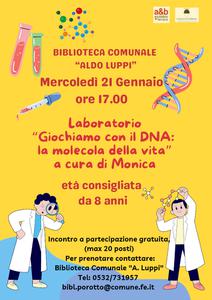 E' possibile estrarre il DNA usando i prodotti che abbiamo in cucina? Per scoprirlo la biblioteca comunale Aldo Luppi, invita bambini e ragazzi dagli 8 anni all'appuntamento a cura di Monica Borgatti in calendario per mercoledì 21 gennaio 2026, alle 17:00, in via Arginone 320 (Porotto - Ferrara).