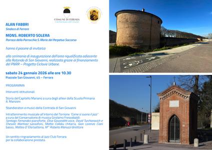 Sabato 24 gennaio 2026 alle 10:30 - con ritrovo nell'area a fianco del Torrione di piazzale San Giovanni a Ferrara - avrà luogo un incontro inaugurale a conclusione dell'intervento di riqualificazione dell'area adiacente il Torrione di San Giovanni, compresa tra la rotatoria e il campo sportivo, dove sono stati realizzati una nuova pavimentazione e un nuovo tratto di pista ciclabile.