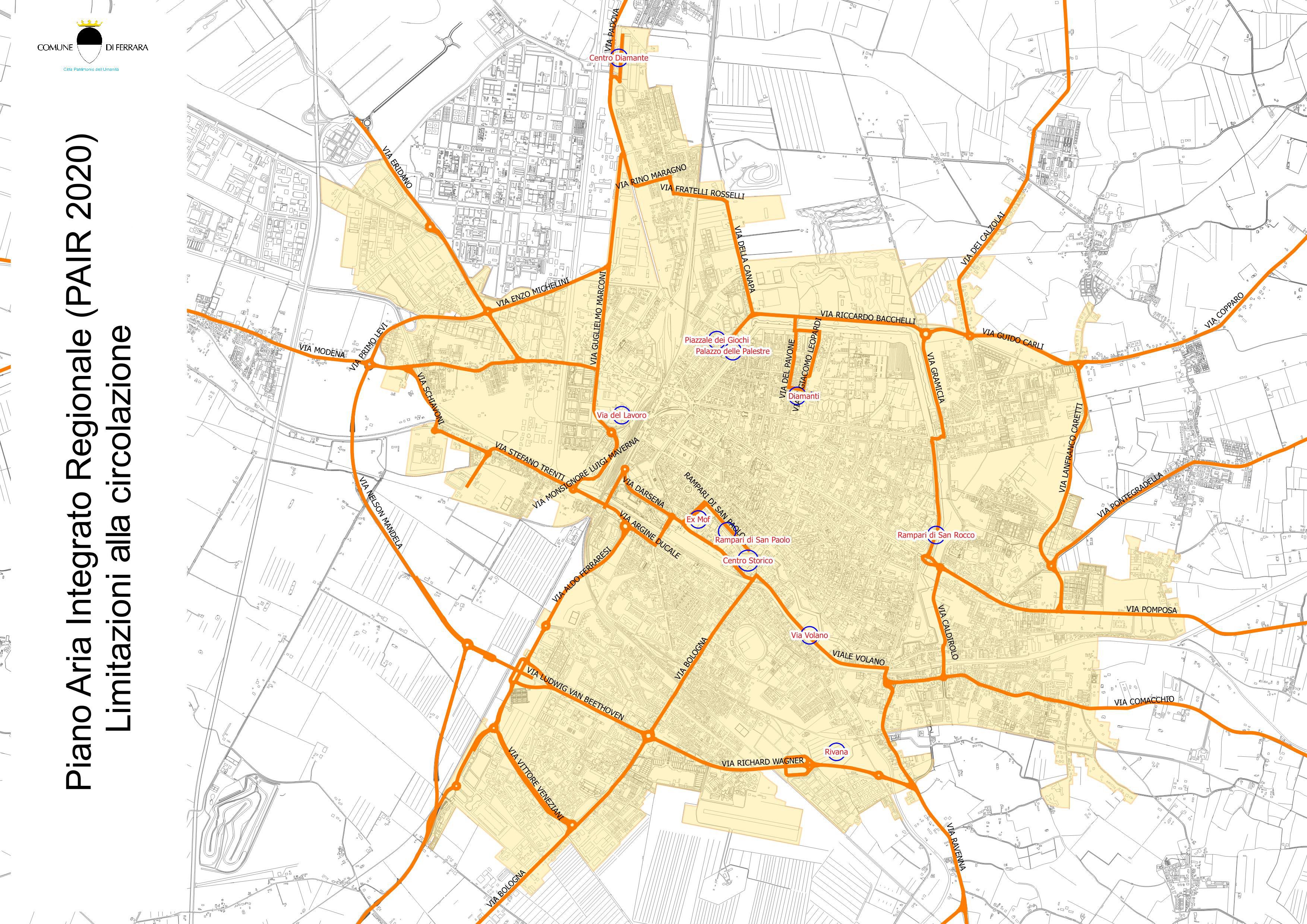 - il divieto di circolazione nella fascia oraria 8:30 - 18:30 nell'area del centro abitato di Ferrara (escluse le strade 'corridoio' - v. MAPPA a fondo pagina), per tutti i veicoli a benzina fino a euro 2, i veicoli metano-benzina o gpl-benzina fino a euro 2, i veicoli DIESEL FINO A EURO 5, e i ciclomotori e motocicli fino a euro 2 (in sostanza i veicoli già interessati dalle limitazioni ordinarie più i diesel euro 5).