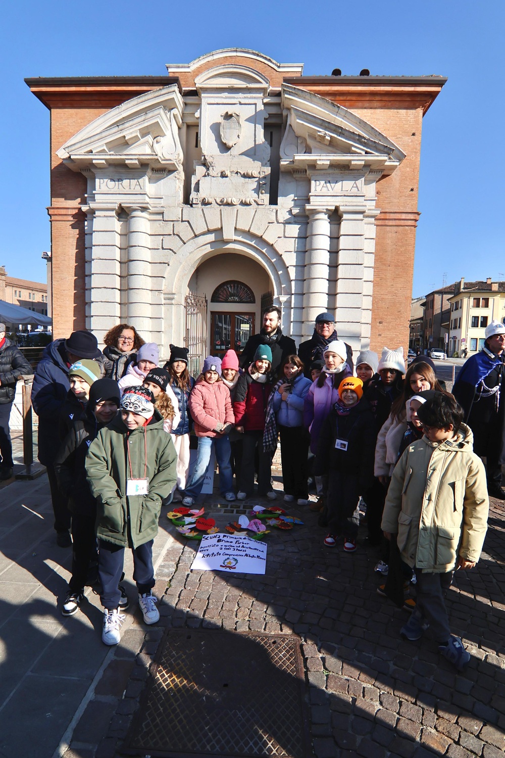 Domani, a conclusione dell'opera, alle ore 12.30, davanti al civico 85 di via Mazzini la classe 2D della scuola "Dante Alighieri" eseguirà gli interventi di cura sulle cinque pietre dedicate alla famiglia Forti-Jesi-Lampronti. L'iniziativa si inserisce in continuità con le operazioni di cura svolte nella giornata di martedì 20 gennaio di fronte alla Sinagoga - al civico 88 di via Mazzini - dalla classe 5 B dell'istituto comprensivo "Perlasca" - Plesso Primaria "Mosti", che ha preso in carico le cinque pietre dedicate alla famiglia Fink-Bassani-Lampronti, e dalla classe 4B del Liceo artistico "Dosso Dossi", che, al civico 14, si è occupata delle cinque pietre dedicate alla famiglia Rietti-Cavalieri.