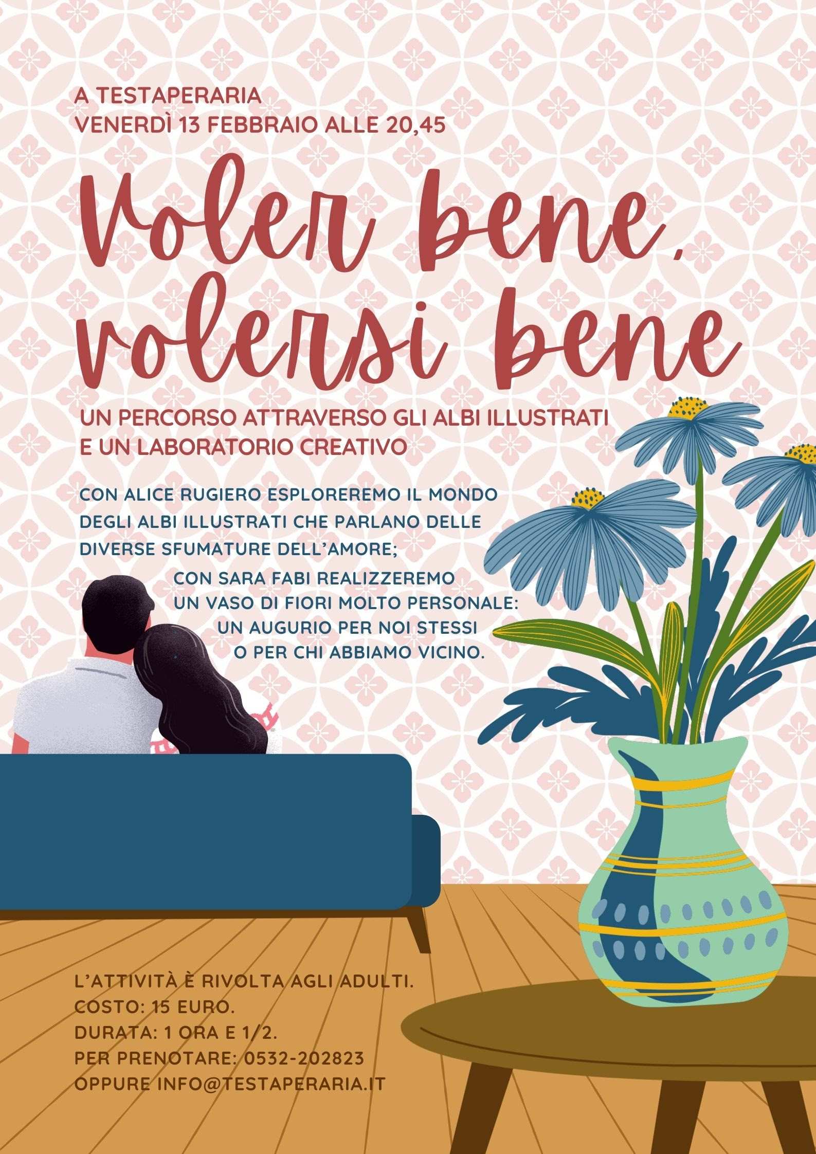 Un percorso attraverso gli albi illustrati e un laboratorio creativo per parlare delle diverse sfumature dell'amore.Con Alice Rugiero esploreremo il mondo degli albi illustrati; con Sara Fabi realizzeremo un vaso di fiori molto personale: un augurio per noi stessi o per chi abbiamo vicino.